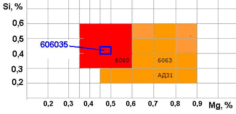Рисунок 2 – Сплав 606035 среди сплавов 6060, 6063 и АД31