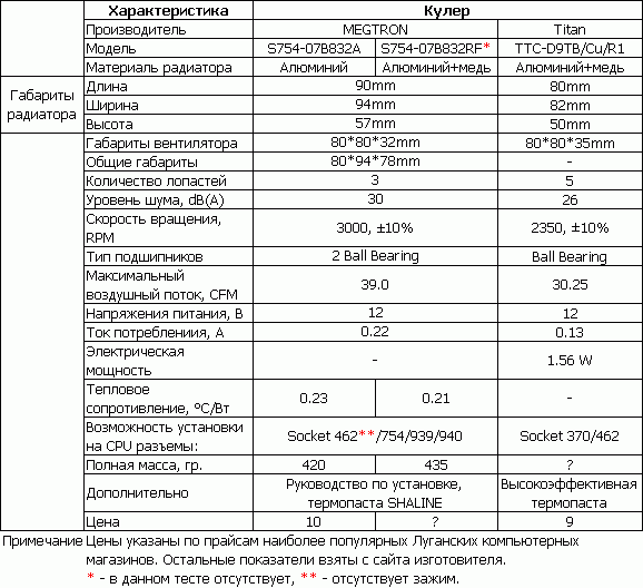 Кроме основы радиатора, для кулеров важно и количество оборотов вентилятора основы радиаторов, сделанные из разных материалов, имеют разные показатели. Сейчас количество оборотов вентилятора кулера в пределах 2000-3000 об/мин. Такое значение оборотов хорошо вписывается в рамки частотной сетки процессоров до 2,2ГГц. А если выше? А если не хочется слушать, как шумит процессорный кулер и так далее? На все эти вопросы отвечают компании-производители процессорных кулеров. Из множества таких компаний для проведения эксперимента я выбрал две — MEGTRON (www.maxgroup.com.tw) и Titan (www.titan-cd.com).