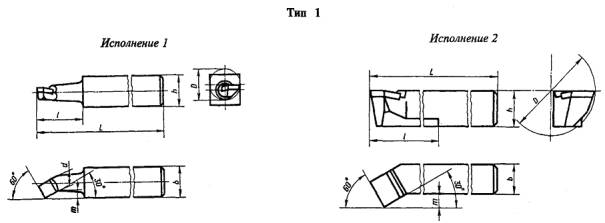 I. Элементы конструкций и геометрические параметры резцов с углом в плане = 45* указаны на черт. 1—4 и в табл. 1—4.