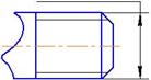 - По внутреннему диаметру изображается дуга, длина которой составляет 0,75 от длины окружности. Она размыкается в любом месте. При этом фаска на чертеже не обозначается.