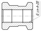 ![]() | ![]() | Резьба трубная, обозначение размера , правая, класс точности средний диаметр резьбы А, длина свинчивания 20 мм. |