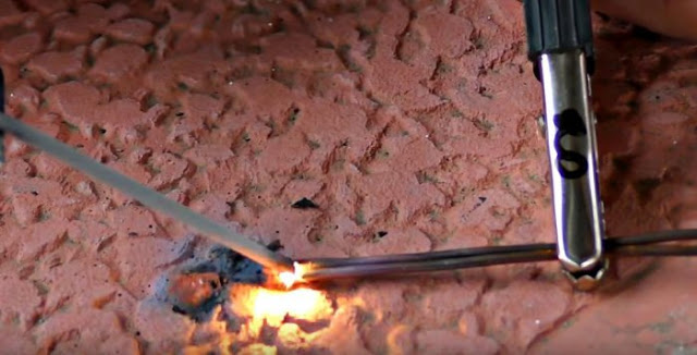 Затем, в удобный зажим его крепим, желательно массивный, но с теплоизолирующей рукояткой. Зажим будет другой конец стержня охлаждать.