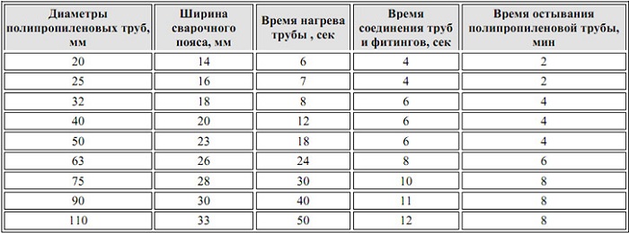 Чтобы сделать прочный шов, необходимо ознакомиться с таблицей сварки полиэтиленовых труб встык.