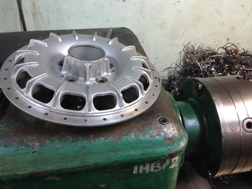 И принял решение, помимо обода и полки с донорского комплекта 16″ Speedline Mistral, применить еще и сам заводской фланец, токарно отточив его от центров.